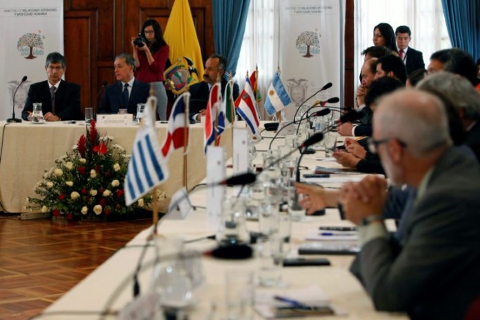 Los países reunidos en Quito, entre ellos Colombia, Perú y Ecuador que están desbordados por la llegada masiva de venezolanos, también acordaron apoyarse mutuamente en la atención de sus nacionales en Venezuela.