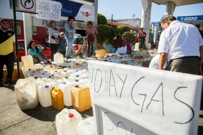 El gobierno decidió cerrar los ductos que transportan la gasolina y trasladar el combustible en camiones cisterna, lo que ha generado retrasos en su distribución y largas filas de automovilistas en las gasolinerías.