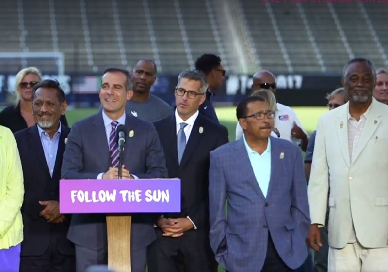 “En Los Ángeles sabemos que el deporte tiene el poder de comprometernos, tiene el poder de inspirarnos. Esta es una ciudad olímpica”, dijo Garcetti.